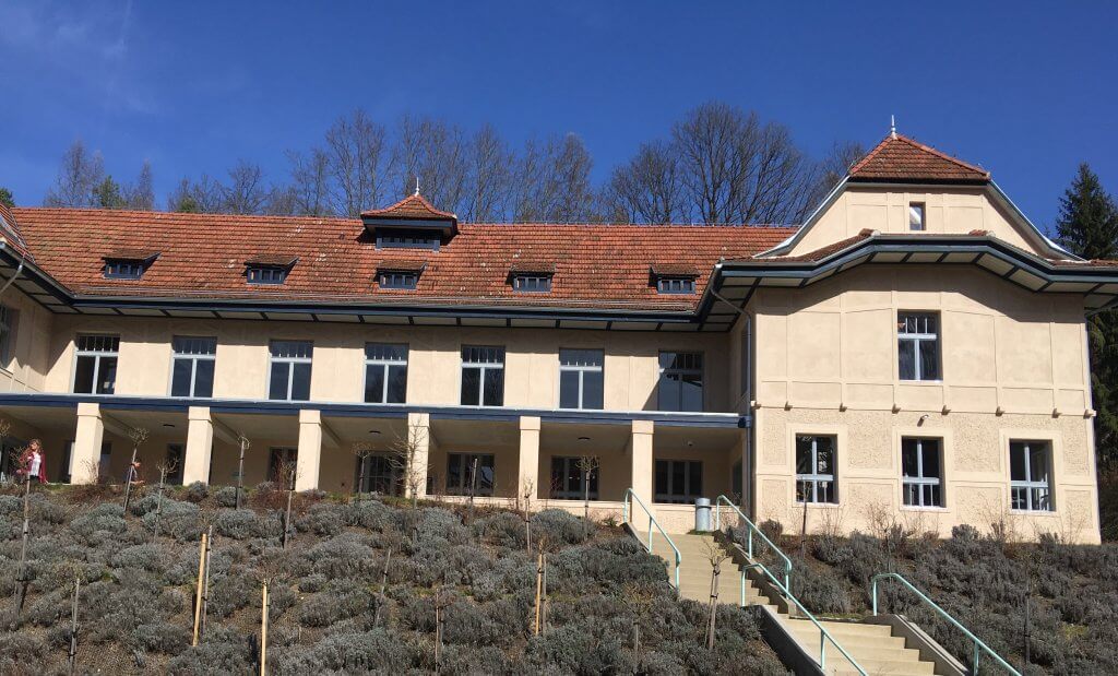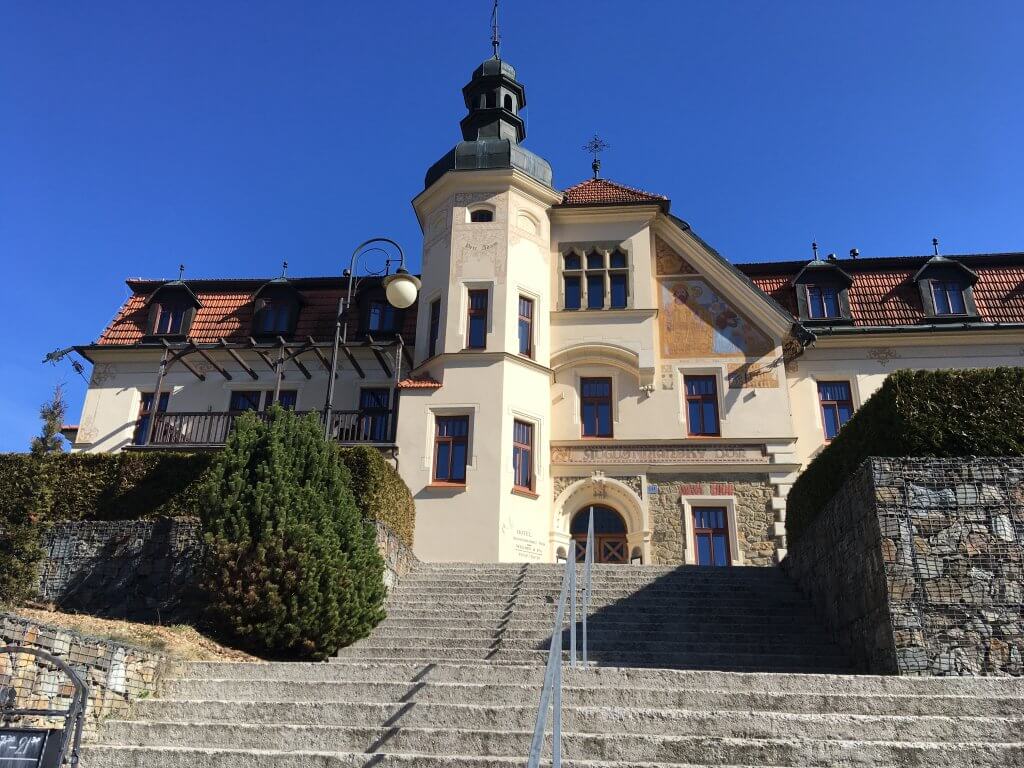 Luhačovice, největší lázně na Moravě, nás přivítaly, lázeňské auto nás brzy zavezlo před „náš“ hotel Jestřabí. Je to jedna z památkově chráněných budov Dušana Jurkoviče, které zdobí lázně zasazené do údolí řeky Šťávnice v chráněné krajinné oblasti Bílých Karpat.