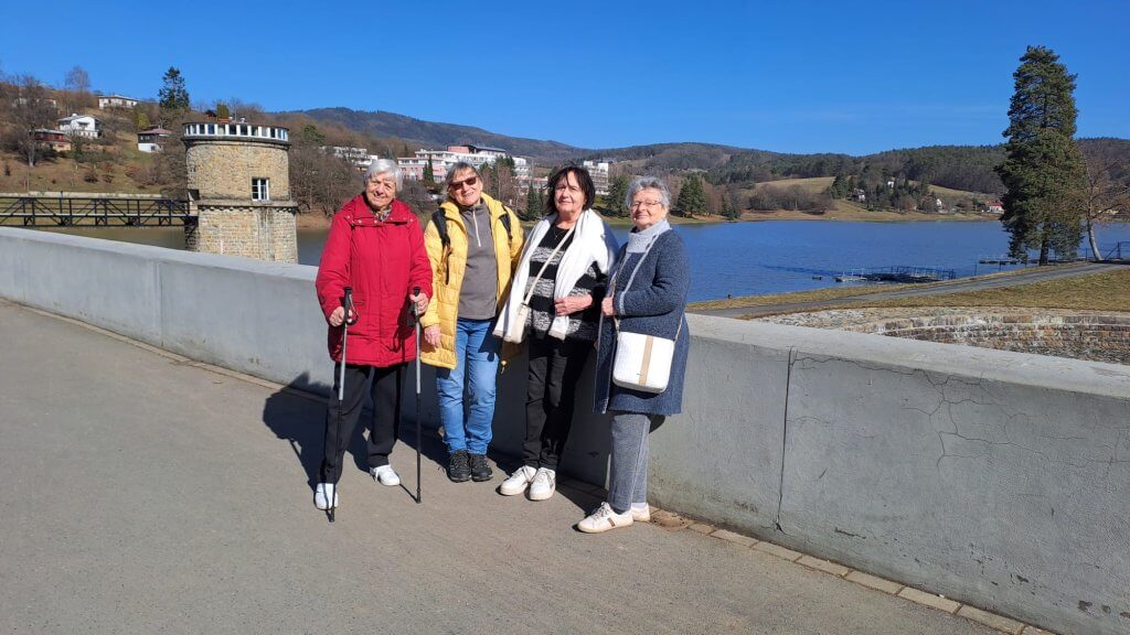 Delší vycházka vedla za teplého počasí od Slunečních lázní Jurkovičovou alejí na Pozlovickou přehradu, dál přes hráz nahoru do Pozlovic, kolem kostela sv. Martina a Pozlovického potoka zpět k Augustiniánskému klášteru a domů do Jestřabí. Rády jsme si také prohlédly Pražskou čtvrť, kde jsou vily pojmenované Hradčany, Vyšehrad, Emauzy, Petřín, Loreta a další. Ani se to nezdálo, ale ušly jsme 9 km, což byl pro některé z nás rekord týdne.